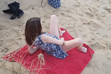 Девушка дрочит ножками на нудистском пляже