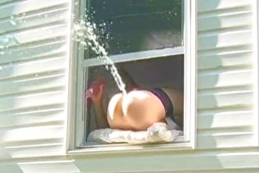 Сквиртанула струёй из окна после мастурбации с дилдо