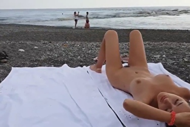 Бесстыжая красотка загорает на пляже абсолютно голая